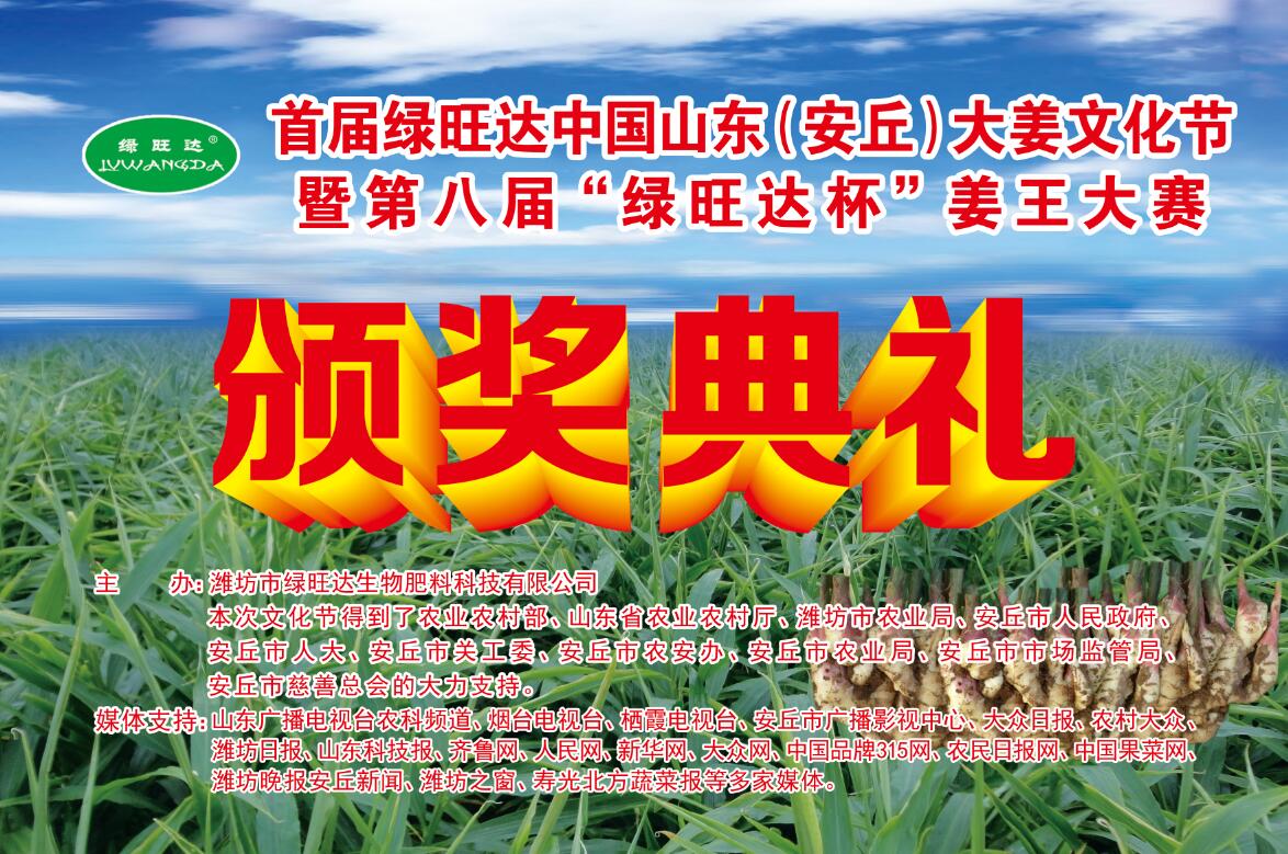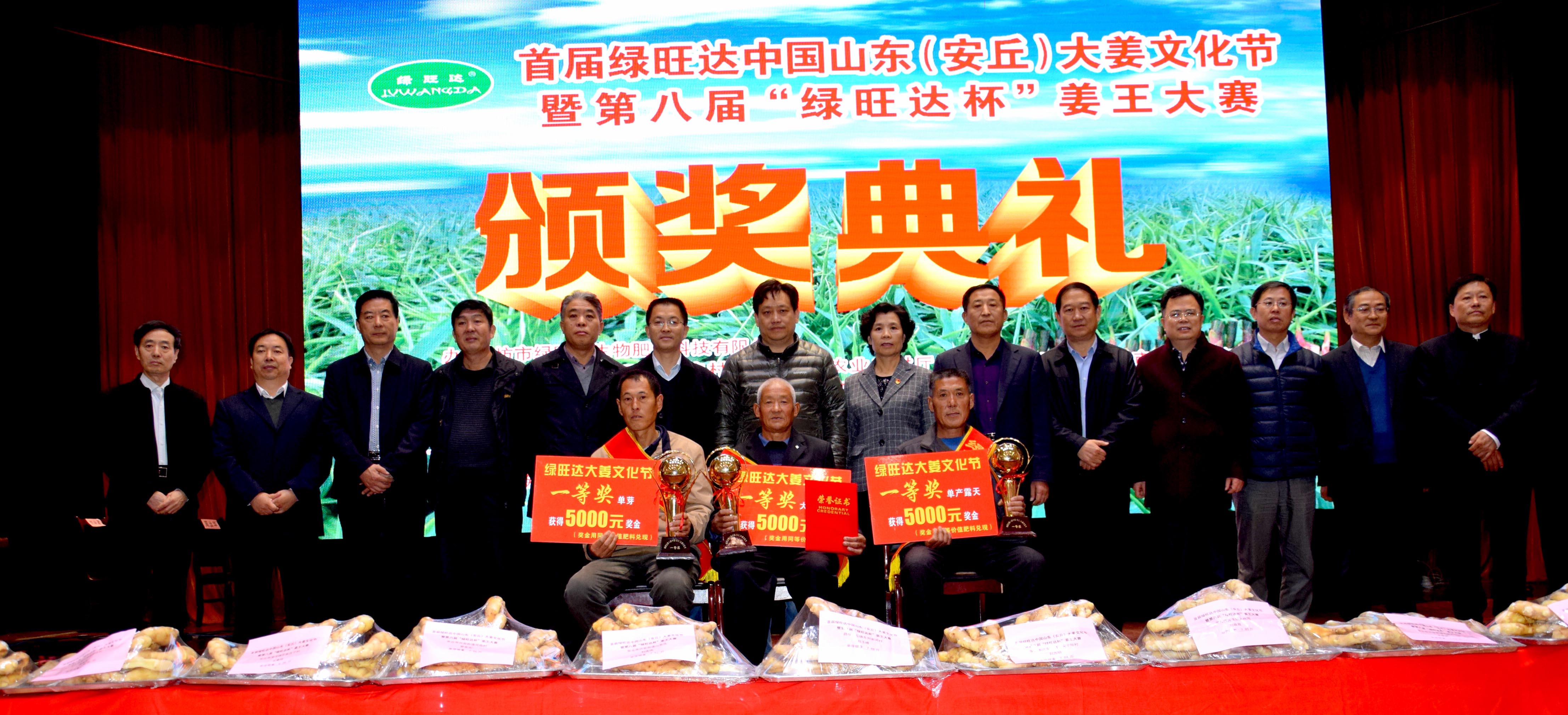 出席启动仪式的领导共同按下水晶球,启动首届绿旺达中国山东(安丘)大姜文化节暨第八届“绿旺达杯”姜王大赛项目。潍坊市绿旺达生物肥料有限公司总经理陈德臻作总结发言。随后颁奖。