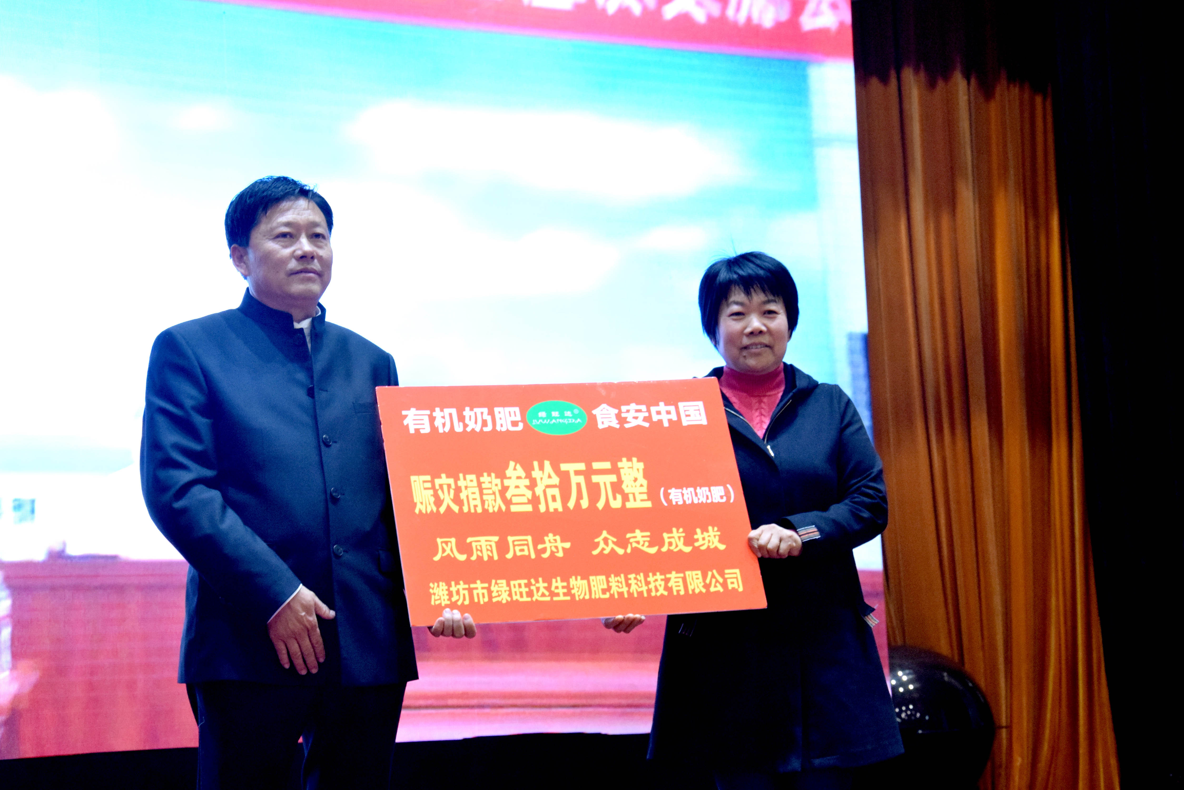安丘市慈善总会李国花会长接受了绿旺达公司将向市安丘市慈善总会30万元捐款。
