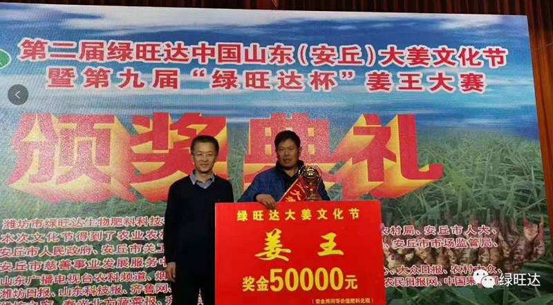 “没想到能拿大奖。拿到这个大奖很激动,能有这么好的产量离不开咱们绿旺达的好肥料还有公司技术人员提供的种植技术,明年我准备种20亩大姜,继续用我们绿旺达的好肥料和种植技术,把土地养好,明年的姜王还是我的!”拿到了此次大赛**名的陈兆寿信心满满地说道。